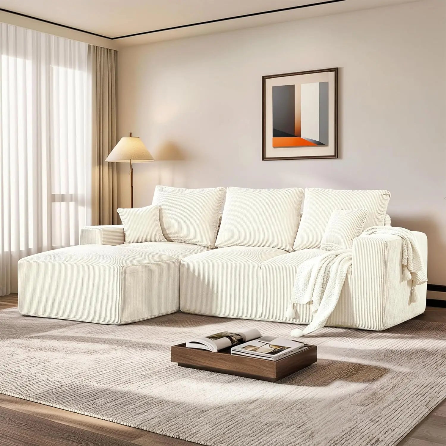 Soft Corduroy: The boneless sofa's innovative construction finds its perfect match in premium corduroy. This fabric's thermal regulation (warm yet breathable) and textured surface enhance the sofa's signature compartmentless support system, creating multidimensional comfort.