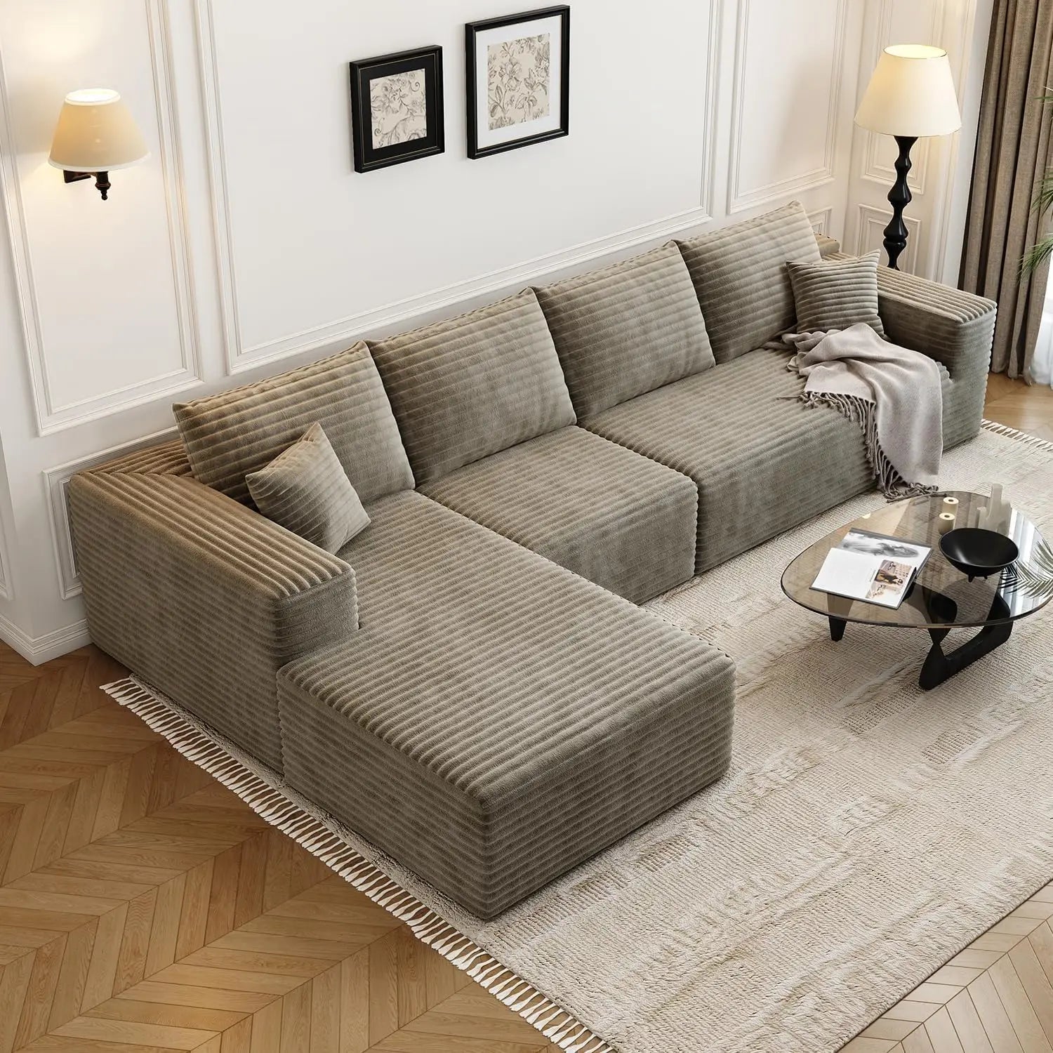 - Modular design lets you reconfigure the pieces to fit your room, traffic flow, and changing needs—from a compact setup to a sprawling sofa for holidays.