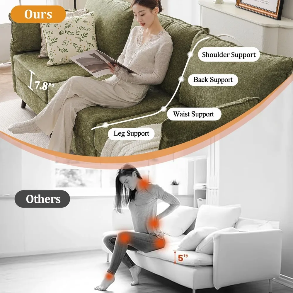 - Premium Quality: Our sofa has 7.8'' thick, made from 25D high-resilience foam, compared to others 18/21D foam,our cushion offers stronger support and lasts longer.The backrest with more filling provides more comfort. This comfy couch can be used for a longer time.