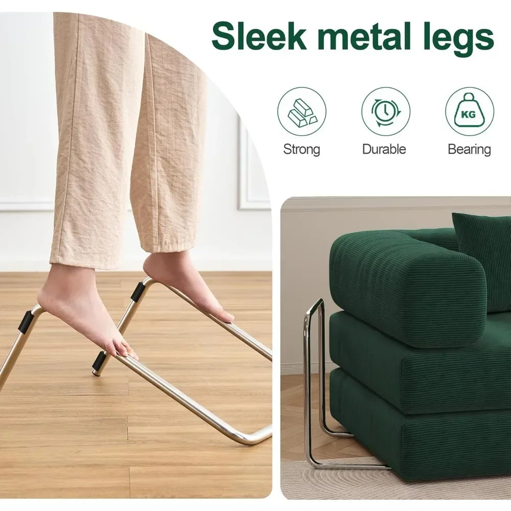 This sofa bed is ideal for anyone seeking a compact, adaptable seating solution without sacrificing comfort or style. It’s perfect for living rooms that double as guest spaces, studio apartments that need flexible layouts, dorm rooms, or reading nooks that invite both conversation and overnight visitors. The combination of a boneless-couch-inspired adaptability, a sturdy fixed-frame, and a breathable corduroy finish makes this piece a standout choice for modern homes that demand function, form, and a touch of tactile warmth.