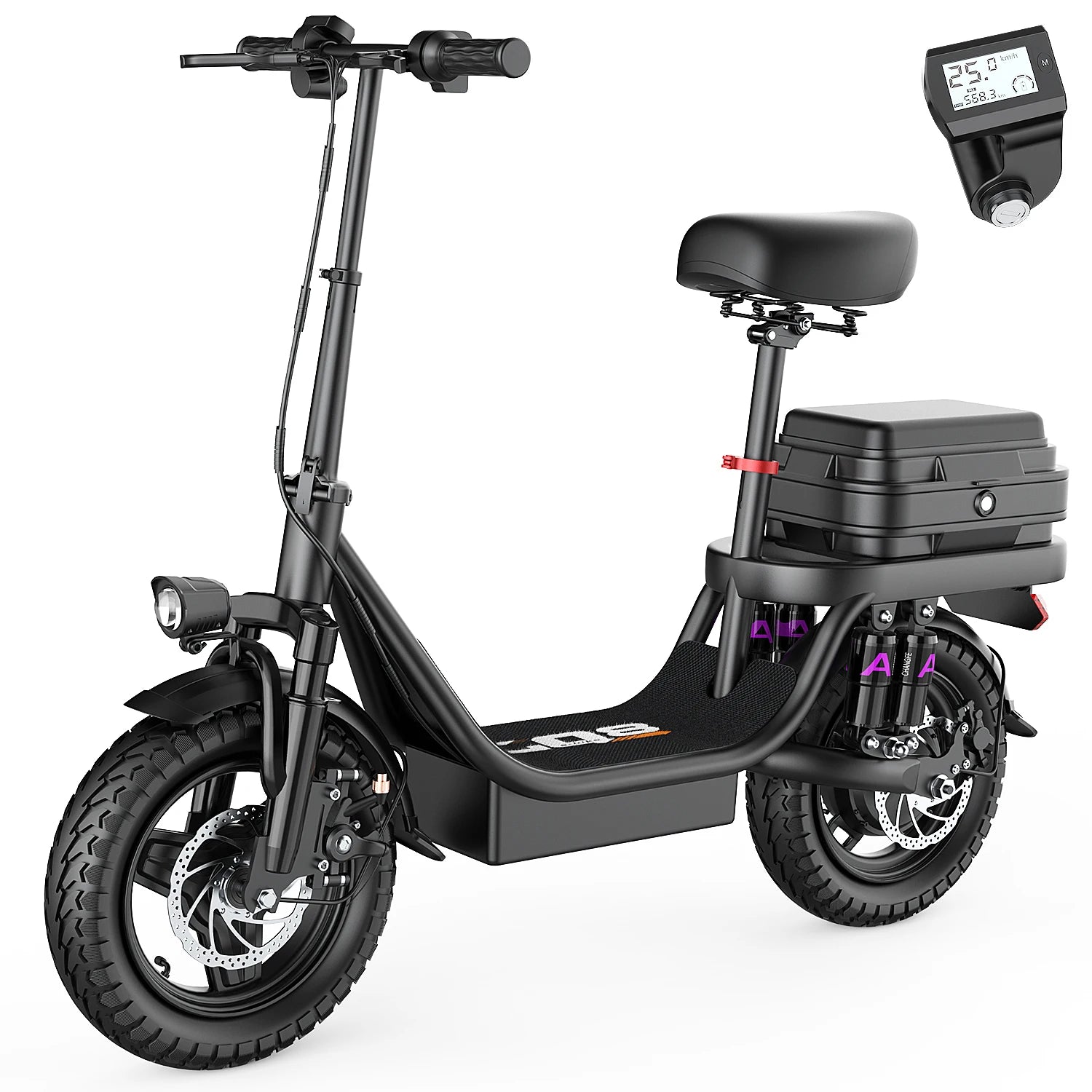 [𝙐𝙥𝙜𝙧𝙖𝙙𝙚𝙙 10 𝙨𝙝𝙤𝙘𝙠 𝙖𝙗𝙨𝙤𝙧𝙥𝙩𝙞𝙤𝙣 𝙨𝙮𝙨𝙩𝙚𝙢]The escooter comes with 10 shock absorptions (front, rear suspension, and seat shock) that significantly reduce shock, making your ride more comfortable and stable. The 14" large pneumatic tires have excellent grip, high elasticity, and wear resistance,Adult bicycles for women, youth and men