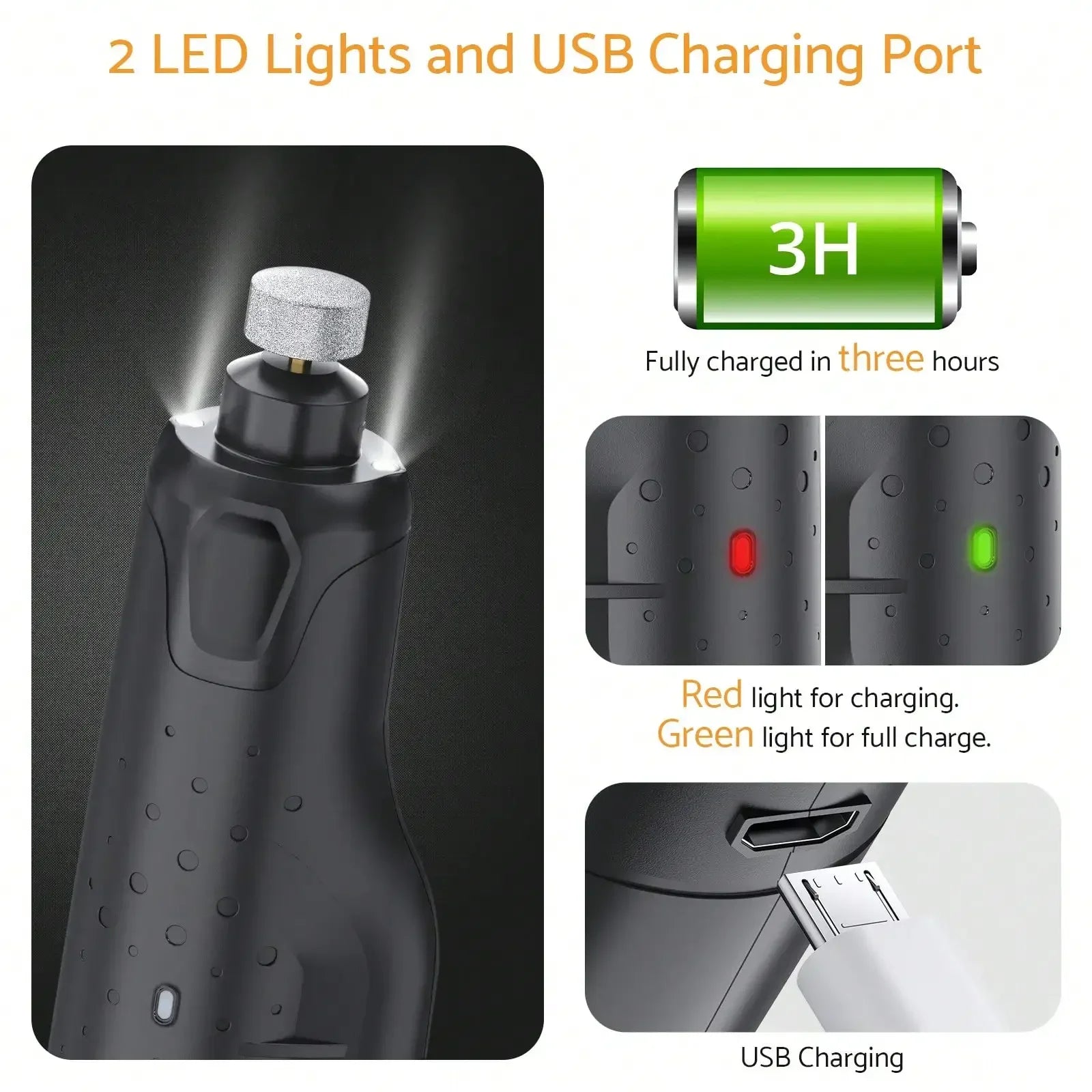 Quiet USB Rechargeable Dog Nail Grinder With 6 Speeds LED