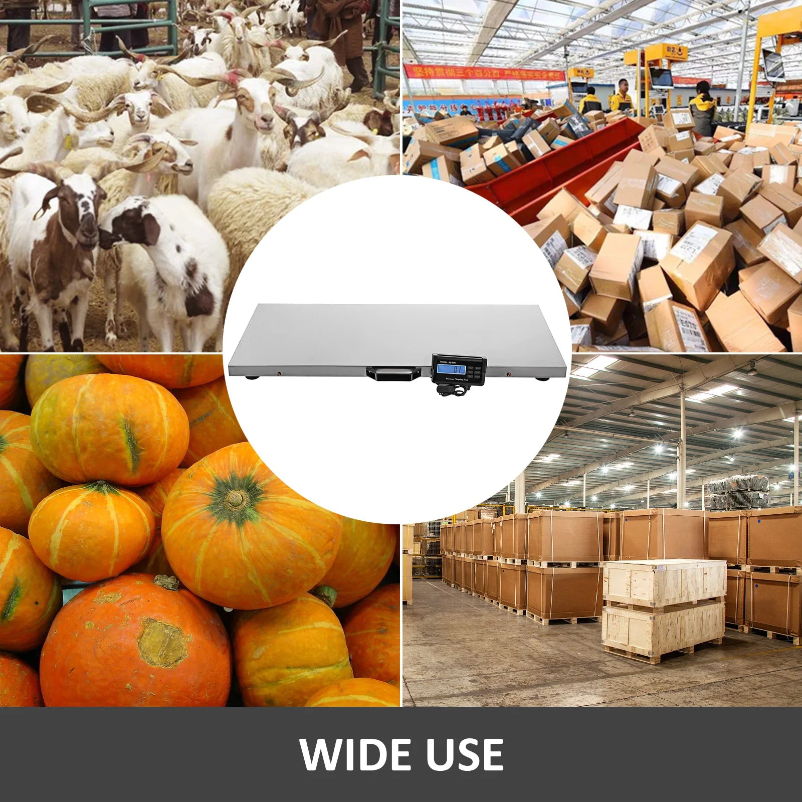 SucceBuy 440/880/1100Lbs Digital Livestock Scale Large Pet Vet Scale Stainless Steel Platform Elect Ronic Postal Shipping Scale